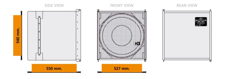 It is a vented 'arrayable bass cabinet' having the same frontal size of two RA16 loudspeakers and with integrated steel suspension fittings that are compatible with model B1 and B2 bumpers and with the RA16' fittings. The combination of RA18 and RA16 allows to project and install compact and efficient audio systems able to reproduce the complete audio spectrum even when you can't or don't want to use floor-standing subwoofers. Indeed RA18 allows to significantly increase the lower octave's sound pressure level generated by the suspended system, thus increasing the already it's large dynamic range, transforming the array in a great array.