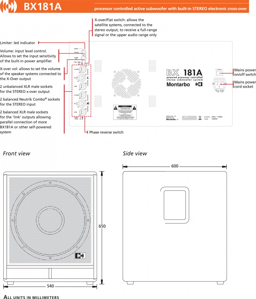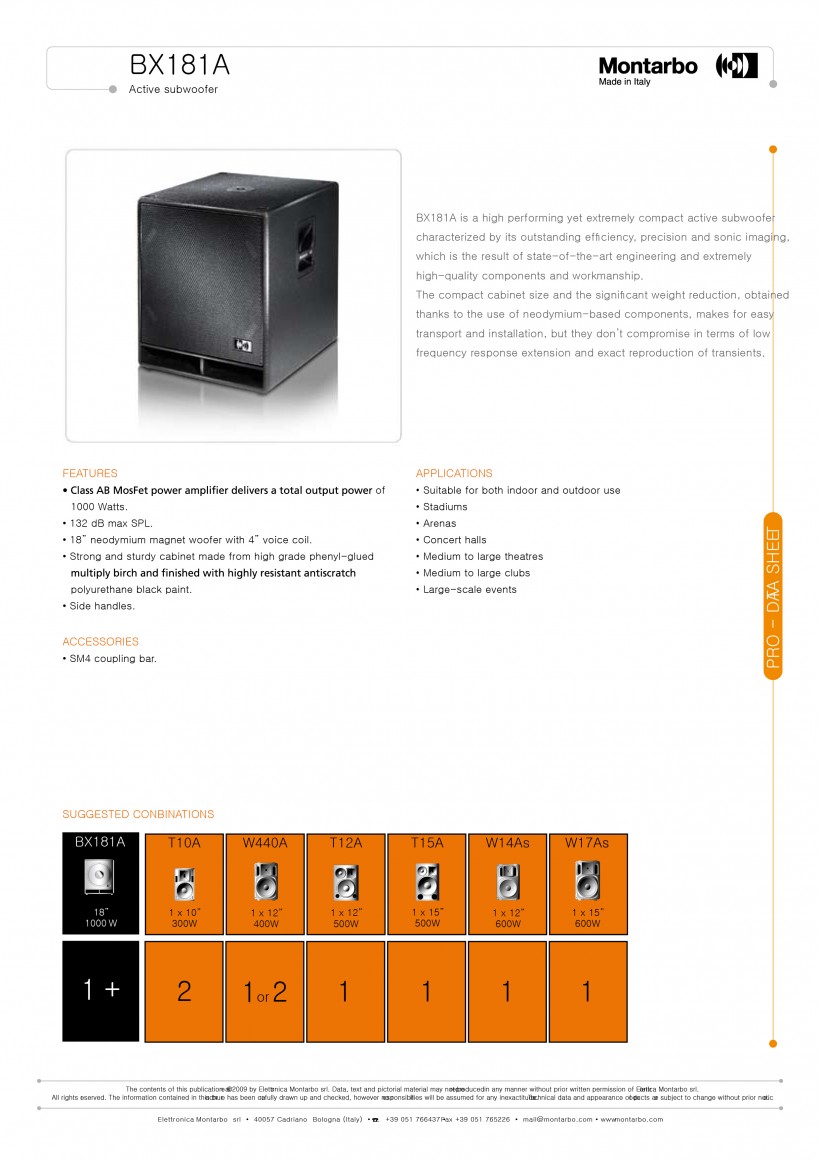 - BX181A is equipped with a 18" woofer - custom designed to Montarbo specifications - featuring neodymium alloy magnet and light-alloy die-cast frame, which ensure significant weight reduction.