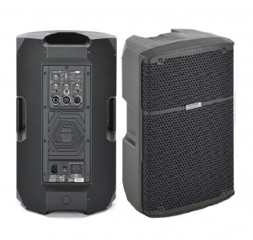 The bass-reflex cabinet is equipped with a 15” woofer and a 1.35 ”compression driver boosted by a 1200 W Class D amp module.