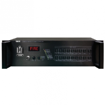 - 본 기기는 비상 방송 설비 통합 시스템으로 리모트 마이크와 연결하여 우선 순위 방송을 제어한다. 외부의 원격신호(리모트 마이크 방송신호)나 비상 신호의 우선 순위에 의해 원격 방송이나 비상 방송으로 자동 전환 한다.