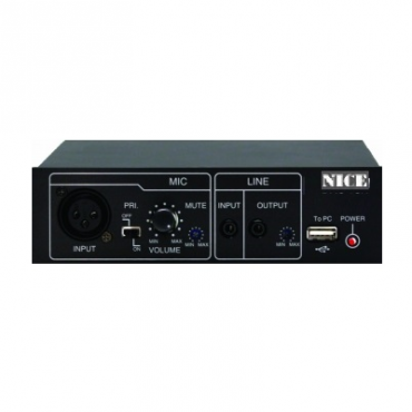 - 본 기기는 USB to UART 컨버터 내장(RS422)-PC USB 단자를 통하여 전관 방송 시스템을 제어할수 있도록 USB – UART 컨버터가 내장되어 있다. 오디오 신호를 발란스 형식으로 변환하여 전달하므로 원거리에도 음원 손실이 적다. 다이나믹 마이크를 연결하여 방송이 가능하고 우선 순위 선택(MIC>BGM)이 가능하다.